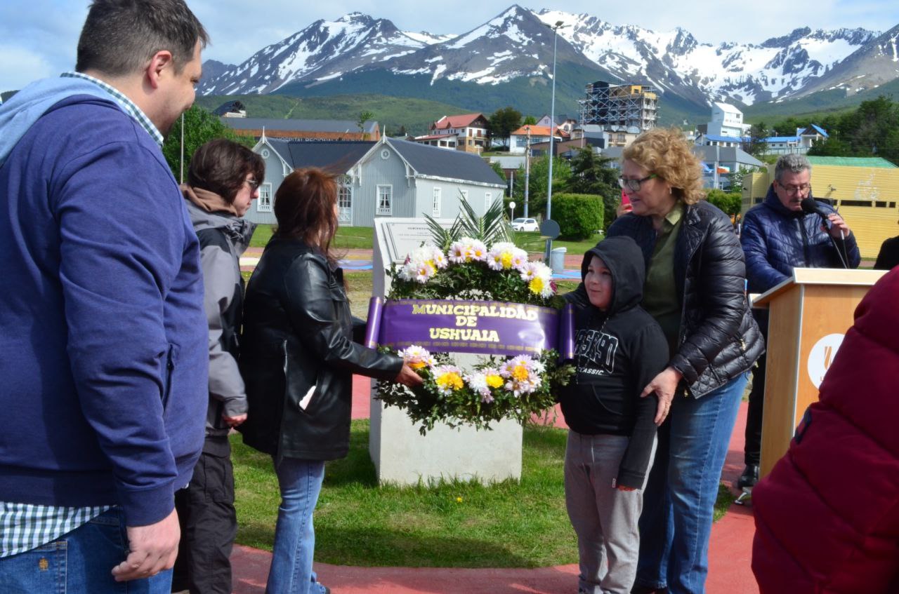 La Municipalidad de Ushuaia llevó adelante en el Espacio de la Memoria del Paseo de las Rosas el acto en conmemoración al “Día del Genocidio Selk’nam”. De la actividad participaron la diputada Carolina Yutrovic, la secretaria de Cultura y Educación, Belén Molina, la secretaria de Planificación e Inversión Pública, María Belén Borgna, la subsecretaria de Cultura y parte de la comunidad Selk’nam, Vanina Ojeda, el subsecretario de Relaciones Parlamentarias y Articulación Política, Omar Becerra, los concejales Nicolás Pelloli y Yésica Garay, nativos de la a comunidad Selk’nam, el vicepresidente de la Asociación Civil Simón Bolívar, Fuerzas de Seguridad, la Banda Municipal, los embajadores de la ciudad y acompañando las banderas de ceremonia Benjamín Ojeda y Javier Ojeda, integrantes del pueblo Selk’nam.