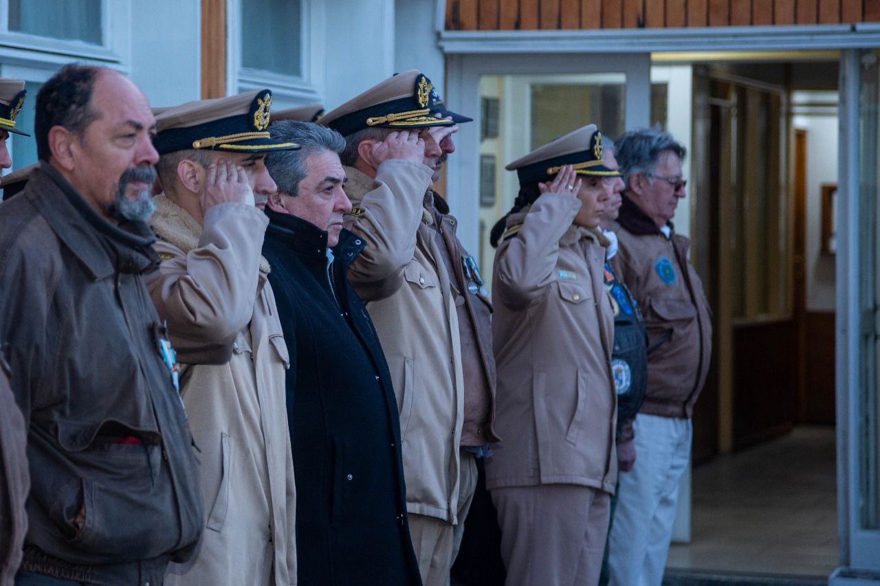 La Municipalidad de Ushuaia participó de la conmemoración del 43° Aniversario del Bautismo de Fuego junto al jefe de Prefectura Ushuaia e Islas del Atlántico Sur, Prefecto Mayor José Delavalle, integrantes del Centro de Ex Combatientes de Malvinas en Ushuaia e integrantes de esta Fuerza de Seguridad.