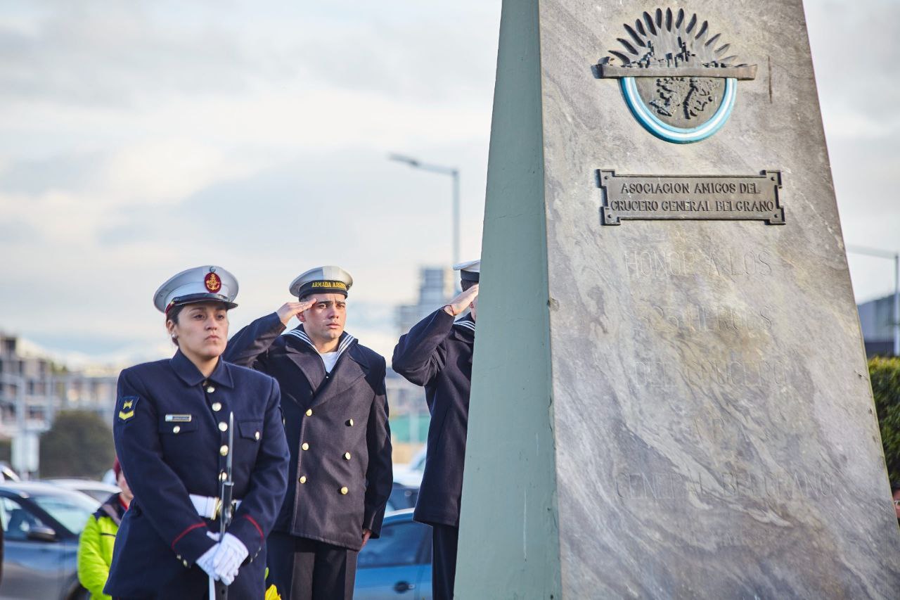 La Municipalidad de Ushuaia participó de la ceremonia que tuvo lugar en la plaza Malvinas al cumplirse el 42° aniversario del hundimiento del crucero ARA General Belgrano y en memoria de los 323 tripulantes fallecidos en el trágico hecho.