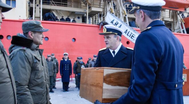 USHUAIA: LA MUNICIPALIDAD PARTICIPÓ EN LA ENTREGA DE LA BANDERA ARGENTINA AL COMANDANTE DEL IRIZAR