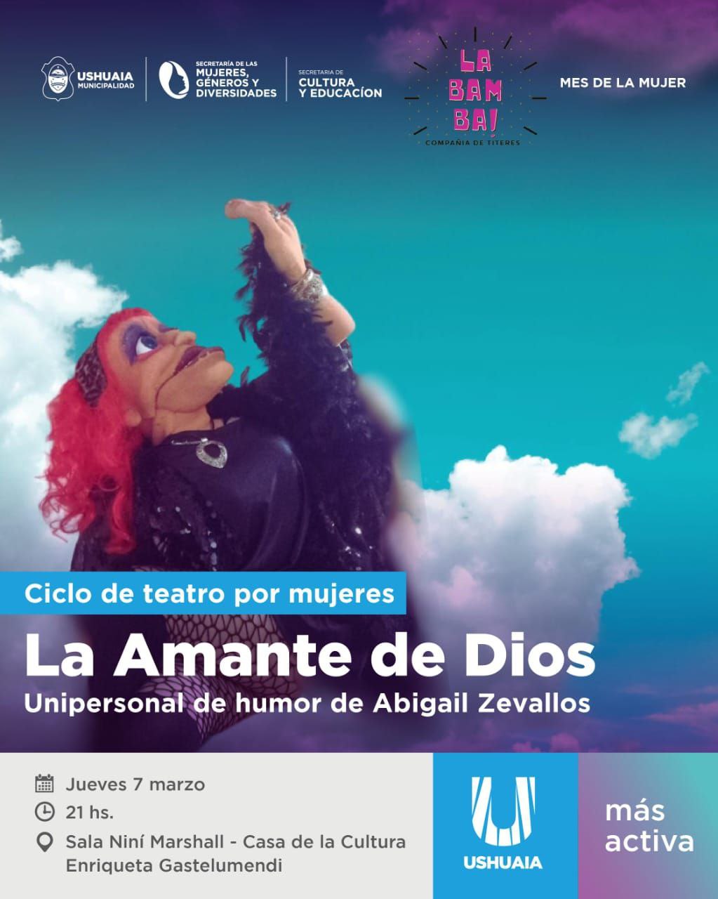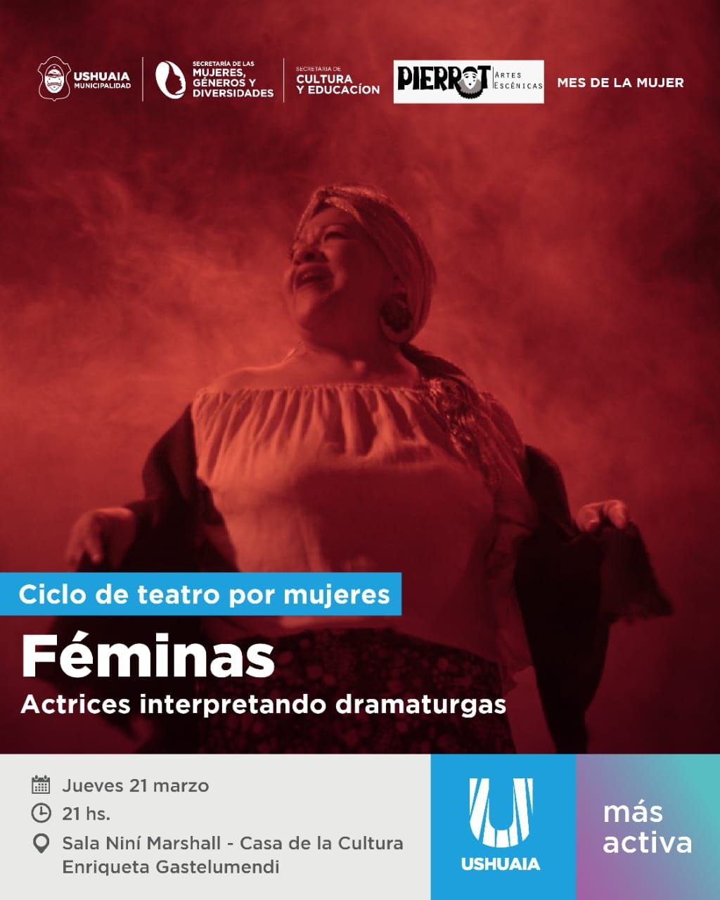 En el marco del Mes de la Mujer, la Municipalidad de Ushuaia a través de la Secretaría de Cultura y Educación y la Secretaría de las Mujeres, Géneros y Diversidades, presentará el ciclo de “Teatro por Mujeres” en el cual se llevarán a escena diversas propuestas teatrales los jueves de marzo en la Sala Niní Marshall de la Casa de la Cultura Enriqueta Gastelumendi.