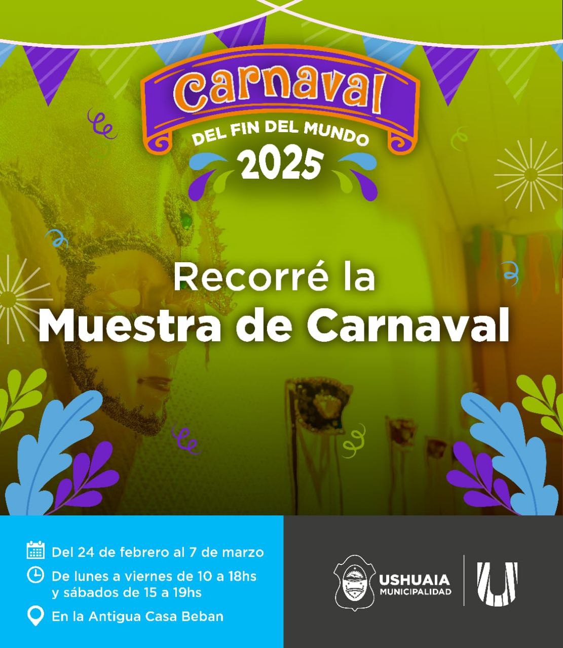 En el marco del festejo popular “Carnaval del Fin del Mundo 2025”, la Secretaría de Cultura y Educación de la Municipalidad de Ushuaia impulsará en la Antigua Casa Beban la “Muestra de Carnaval”.