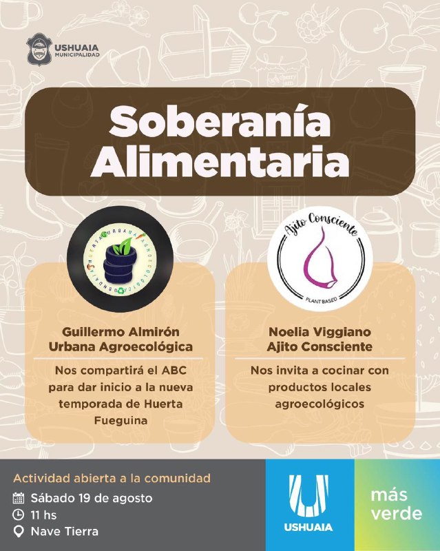 La Municipalidad de Ushuaia invita a los vecinos y vecinas a participar de una jornada sobre soberanía alimentaria donde habrá una instancia para compartir experiencias locales. El encuentro tendrá lugar el sábado 19, en la Nave Tierra a las 11 horas, con entrada libre y gratuita.