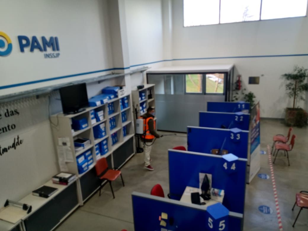 El subsecretario de Relaciones con la Comunidad, Guillermo Navarro, indicó que “desde Atención al Vecino” llevamos adelante tareas de desinfección tanto en la UDAI Ushuaia de ANSES como en PAMI, sumando los trabajos que en forma permanente se realizan desde distintas áreas de la Municipalidad”.