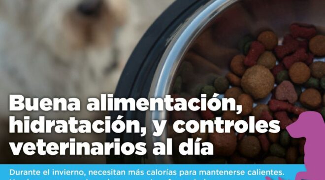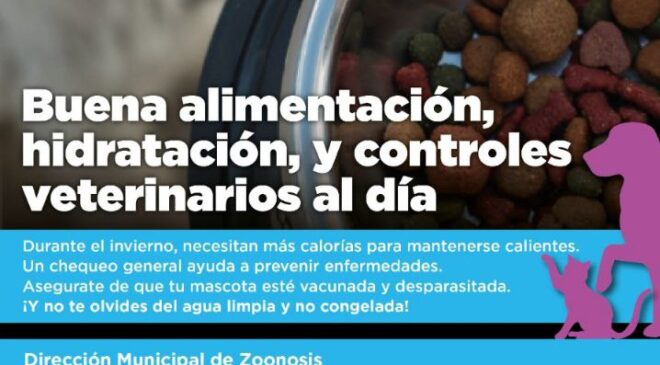 Desde Zoonosis recuerdan que “durante el invierno los perros y gatos necesitan más calorías para mantener su temperatura corporal, por lo que es clave asegurar una alimentación completa, adecuada y equilibrada”. En tanto, “es fundamental que cuenten con acceso a agua limpia y no congelada en todo momento”.