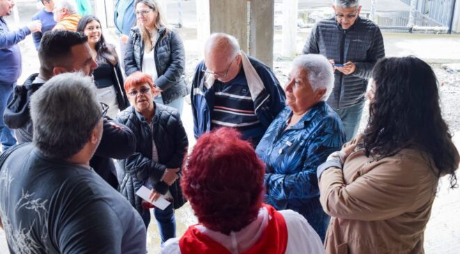 Durante la visita, el intendente estuvo acompañado por funcionarias y funcionarios del gabinete municipal, concejales de la ciudad, referentes de los centros de jubilados y adultos mayores, y representantes del grupo empresario y de la firma que llevará adelante la ejecución de los trabajos.