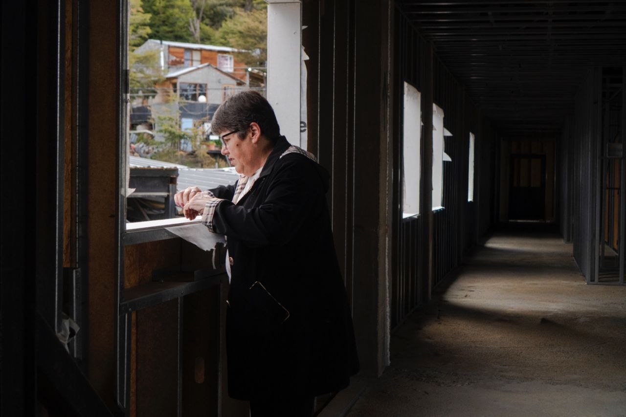El intendente de Ushuaia, Walter Vuoto, recorrió la obra de la Residencia del Adulto Mayor, cuya ejecución fue reactivada tras la firma de una adenda al convenio original de responsabilidad social empresaria con el Grupo New San.
