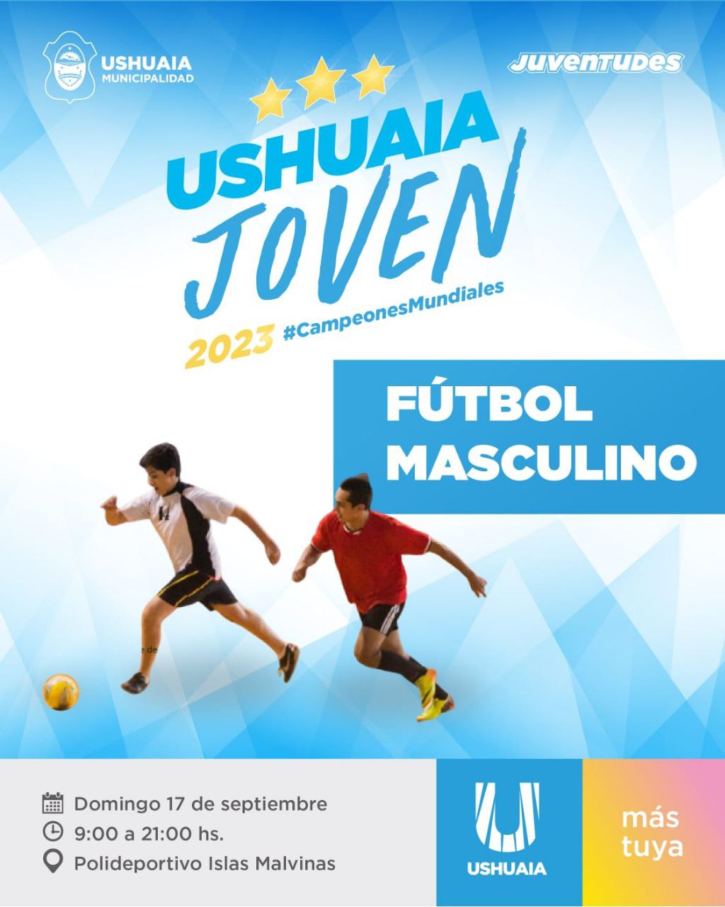 La Secretaría de Cultura y Educación de la Municipalidad de Ushuaia, a través de la Coordinación de Juventudes, dará comienzo este sábado a una nueva edición del “Ushuaia Joven” con las competencias de fútbol femenino y masculino los días sábado 16 y domingo 17 respectivamente en el Polideportivo del barrio La Cantera.