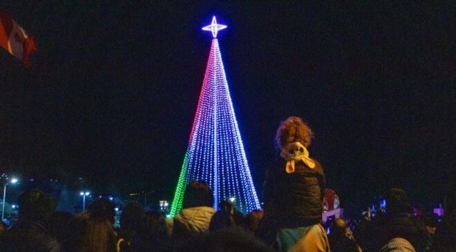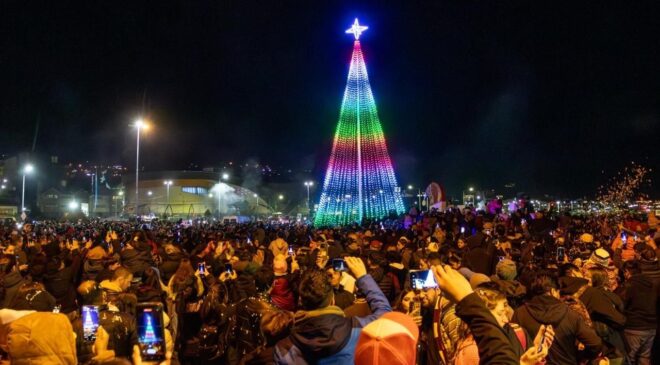 Ante una multitud de vecinos y vecinas que se acercaron al Cartel de Ushuaia, en la Pasarela “Luis Pedro Fique”, la Municipalidad de Ushuaia llevó adelante el tradicional encendido del Árbol Navideño, en una jornada especial donde miles de ushuaienses esperaron la medianoche para dar inicio al 8 de diciembre.