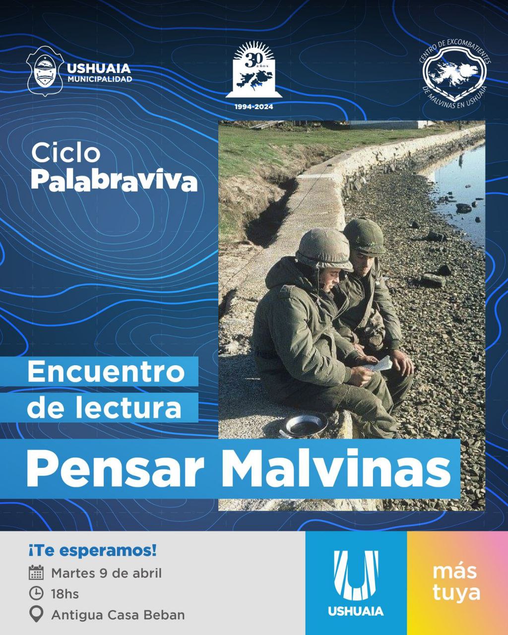 En el marco del 42° Aniversario de la Gesta de Malvinas y el 30°de la Inauguración del Monumento Nacional “Héroes de Malvinas”, la Secretaría de Cultura y Educación y la Secretaría de Asuntos Malvinas de la Municipalidad de Ushuaia llevarán adelante un nueva jornada del ciclo “Palabraviva” en la Antigua Casa Beban el día martes 9 a las 18:00 horas.