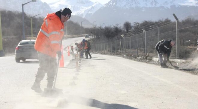 La Municipalidad de Ushuaia a través de la Secretaría de Medio Ambiente continúa con la limpieza en veredas y cordones en distintos sectores de la ciudad, a fin de dejar preparados los distintos espacios públicos para después realizar la puesta en valor.