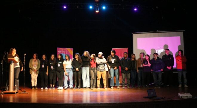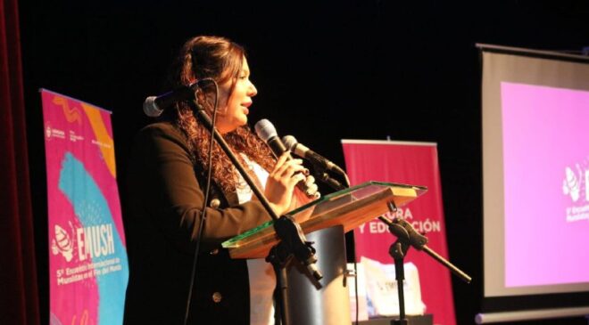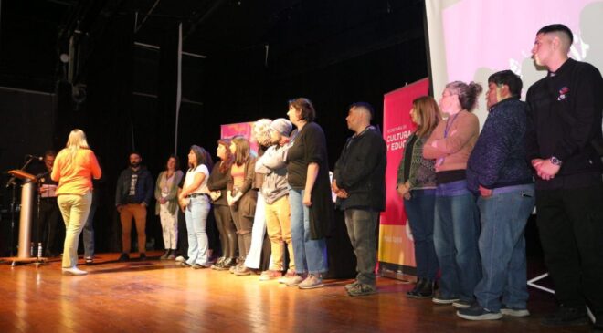 Gabriela Muñiz Siccardi, viceintendenta de Ushuaia, realizó junto a las y los funcionarias la entrega de un presente conmemoratorio a las y los artistas, así como la presentación de la resolución que declara a EMUSH de Interés Municipal, realizada por el Concejo Deliberante de Ushuaia.