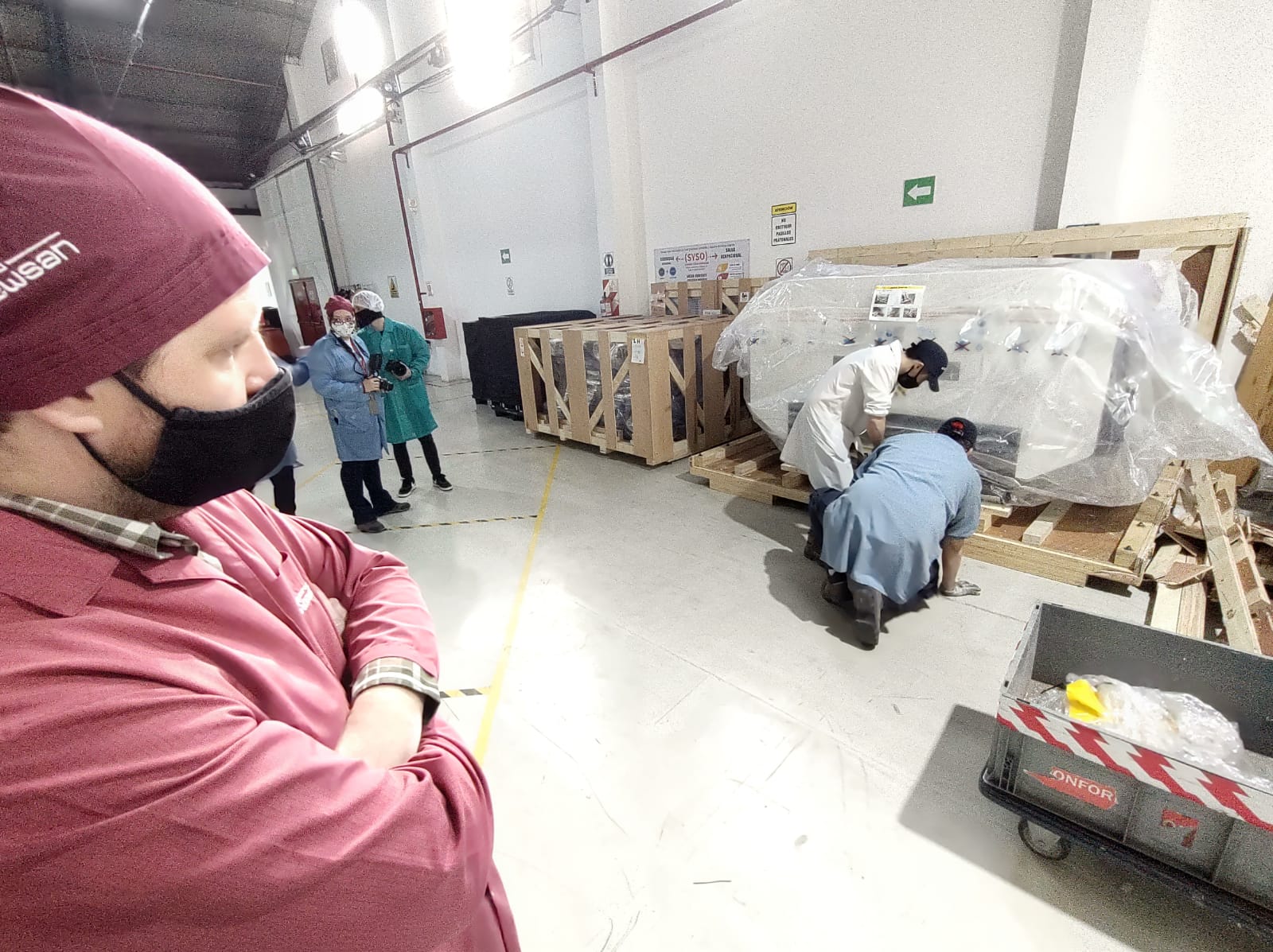 En dialogo con JCAnoticias, Facundo Bianciotto representante de Newsan en pleno desembalaje de la nueva máquina Panasonic para fabricación de placas en simultaneo conto las especificaciones técnicas de la nueva adquisición.