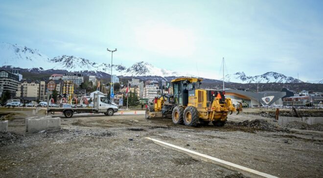 La secretaria de Planificación e Inversión Pública de la Municipalidad de Ushuaia, arq. Belén Borgna indicó que “en este caso se estuvo trabajando con maquinaria, haciendo consolidación de suelo y acopio de material, para reiniciar entre el martes y miércoles la colocación de adoquines en los sectores de calzada”.