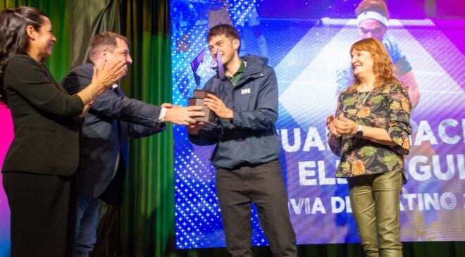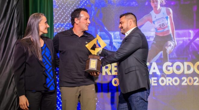 El intendente Walter Vuoto encabezó la ceremonia de premiación y realizó la entrega del máximo galardón a la familia de Renata Godoy, quien no estuvo presente por estar compitiendo en los Juegos de la Araucanía.