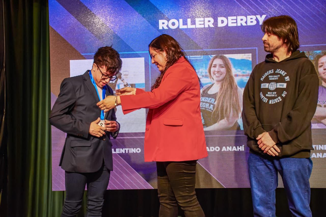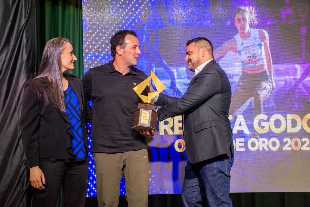 El intendente Walter Vuoto encabezó la ceremonia de premiación y realizó la entrega del máximo galardón a la familia de Renata Godoy, quien no estuvo presente por estar compitiendo en los Juegos de la Araucanía.