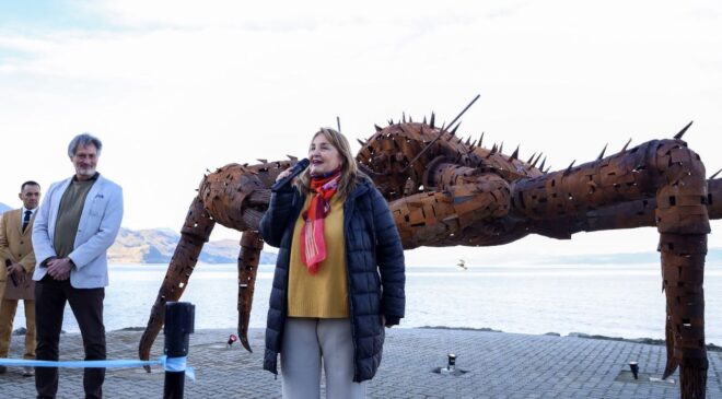A su vez, Gómez Soto dijo que el Paseo de la Centolla “fue un sueño, luego un proyecto y hoy es una realidad”, y agregó que “era una obligación que teníamos y creíamos que era muy bueno poder darle un poco de arte a este nuevo espacio, es una manera de vincularnos con toda la comunidad”.
