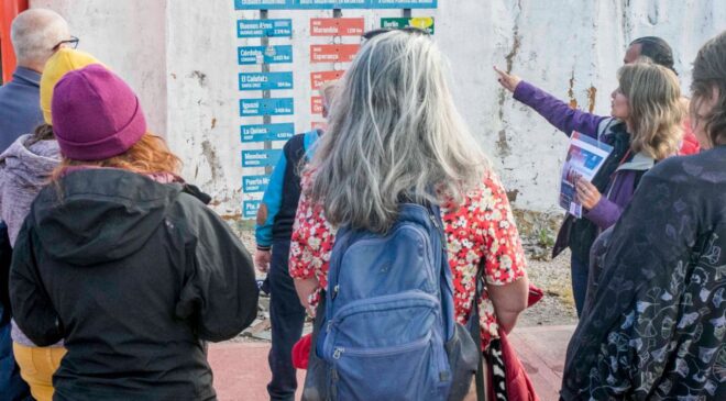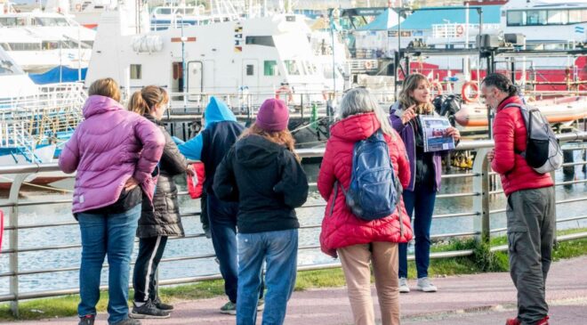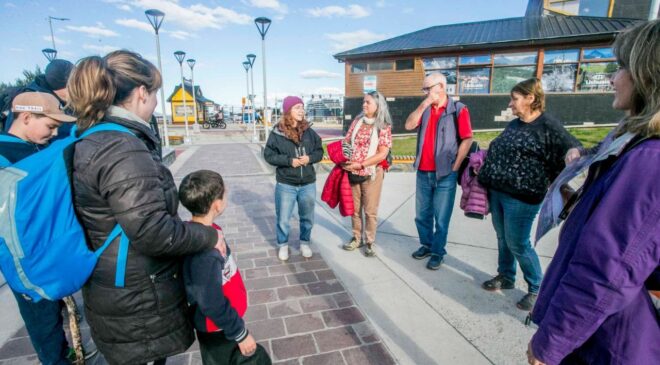 La recorrida fue guiada por Silvana Carreras, maestranda en Estudios Antárticos de la UNTDF y profesional de turismo de la ciudad. Se inició en la Secretaría de Turismo del Municipio y durante una hora las y los participantes disfrutaron de la caminata por la costanera hasta el Paseo de los Exploradores Antárticos.
