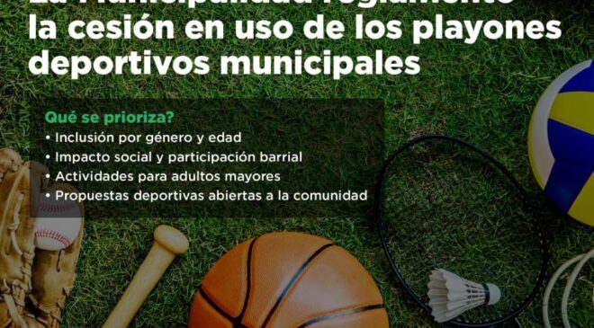 Mediante este Decreto reglamentario de la Ordenanza Municipal N°6471, se establecen los criterios, procedimientos y responsabilidades para la asignación de los espacios con el objetivo de promover un uso ordenado, inclusivo y comunitario de los espacios deportivos, garantizando la transparencia en la asignación de los playones, determinando mecanismos de control y responsabilidad compartida entre el Municipio y las entidades.