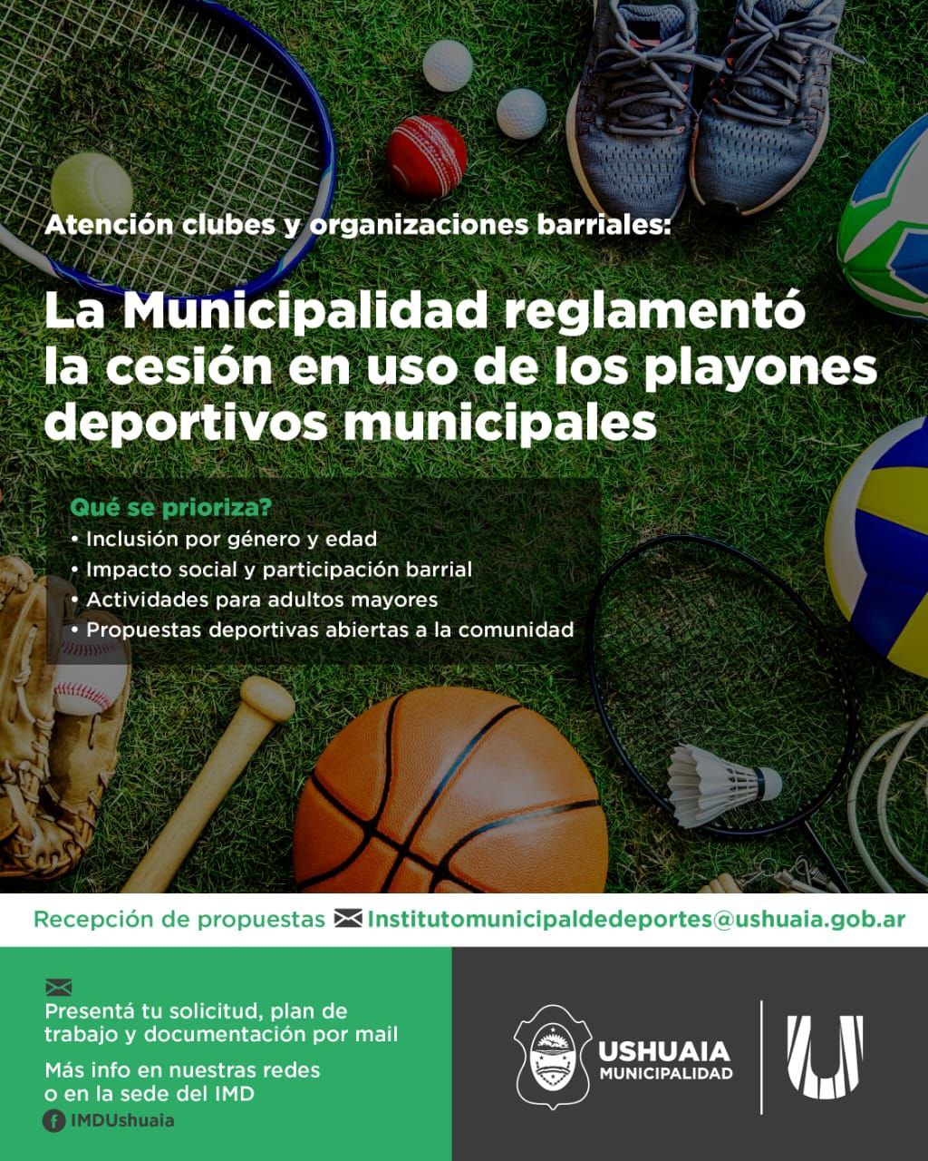 La Municipalidad de Ushuaia, a través del Decreto Municipal N.º 810/2025, reglamentó la cesión en uso, mantenimiento y administración de los playones deportivos municipales a clubes, asociaciones y comisiones vecinales.
