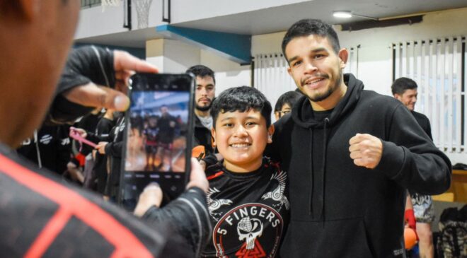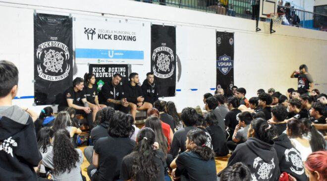 El múlticampeón argentino aceptó la invitación de las Escuelas Municipales de Kickboxing «Fin del Mundo» y «Peleadoras del Fuego», junto al IMD y la Municipalidad de Ushuaia, para dictar una clase especial que duró tres horas en las que compartió toda su experiencia y conocimiento sobre el Kickboxing y K-1.