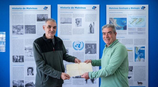 La Secretaría de Asuntos Malvinas de la Municipalidad de Ushuaia recibió a un turista proveniente de Loma de Zamora de Buenos Aires, quién donó cartas de la Guerra de Malvinas para que sea resguardada en el museo Pensar Malvinas.