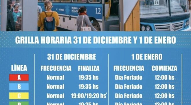 Los días 24 y 31 de diciembre todas las líneas iniciarán sus recorridos en el horario y frecuencia habitual, realizando las últimas salidas desde la Rotonda del Indio a las 17.50 horas para las Líneas A y B, finalizando 19.35 horas.