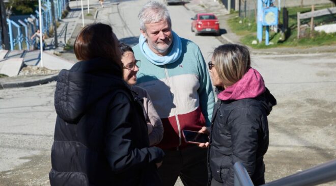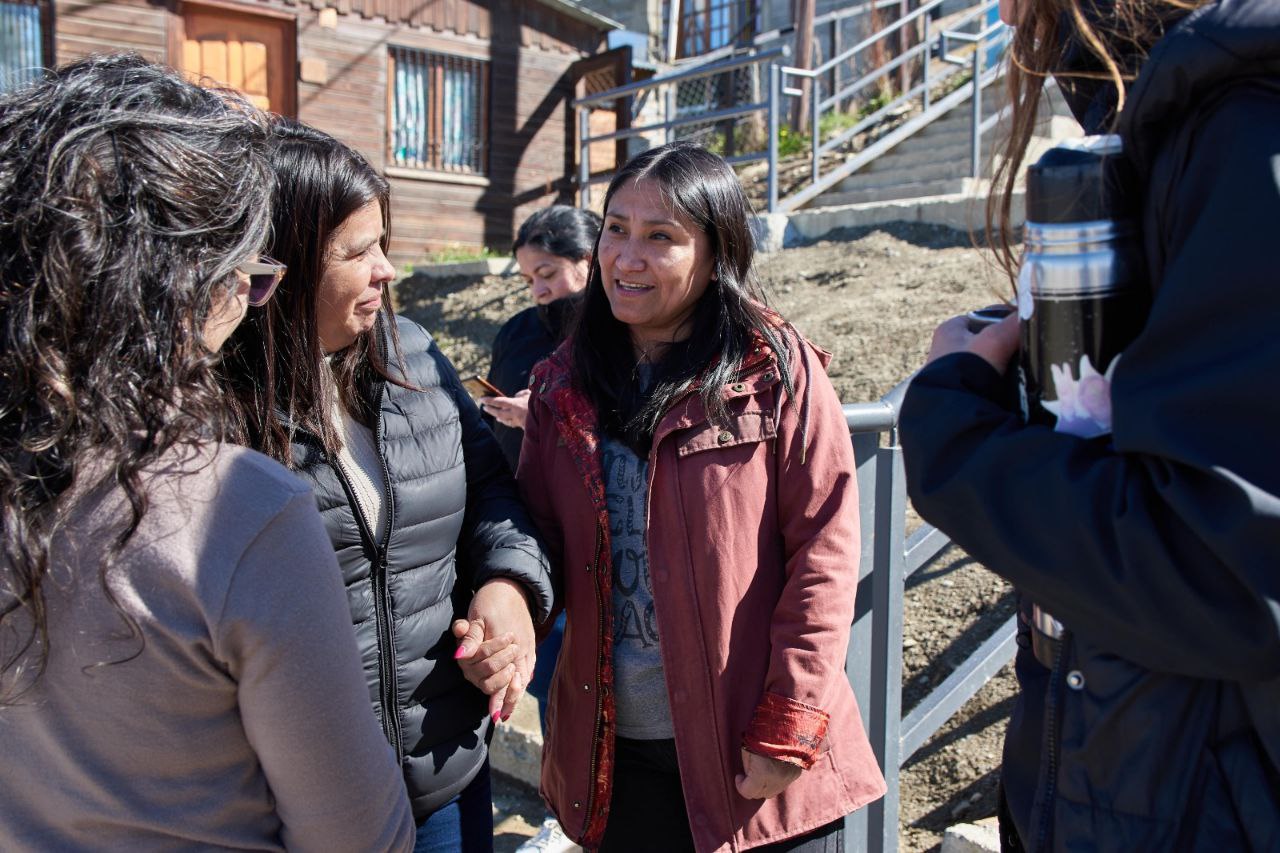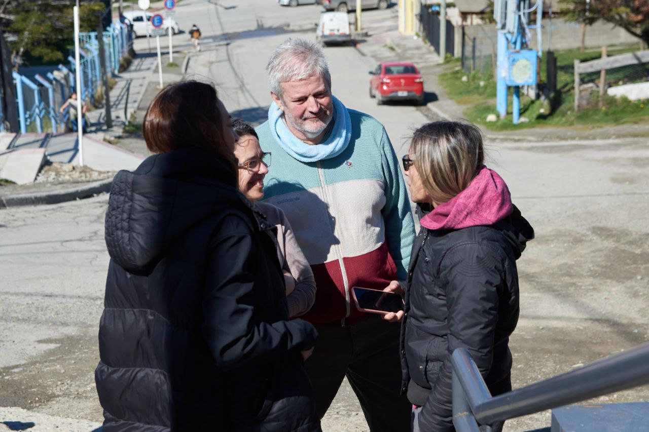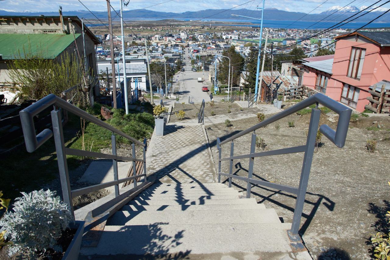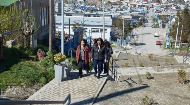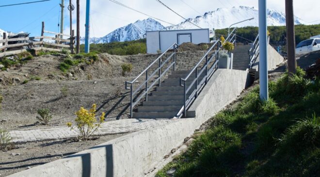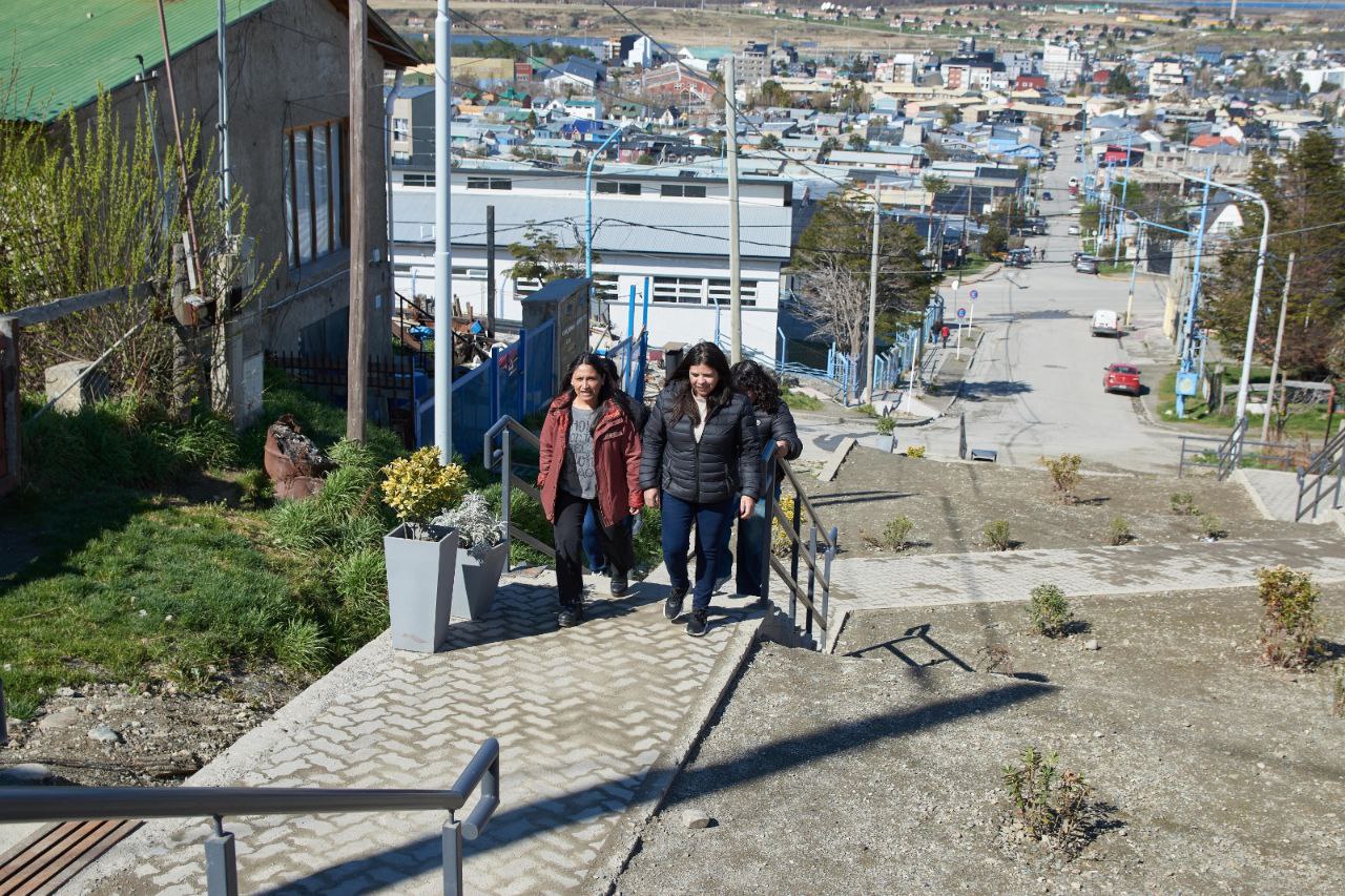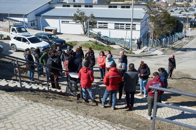 Vecinos y vecinas, junto a funcionarios de la Municipalidad de Ushuaia y concejales, realizaron una recorrida por la nueva escalera ubicada en la intersección de Yowen y Karukinka Norte, una obra muy esperada por la comunidad que mejora la conectividad y la seguridad peatonal en la zona.