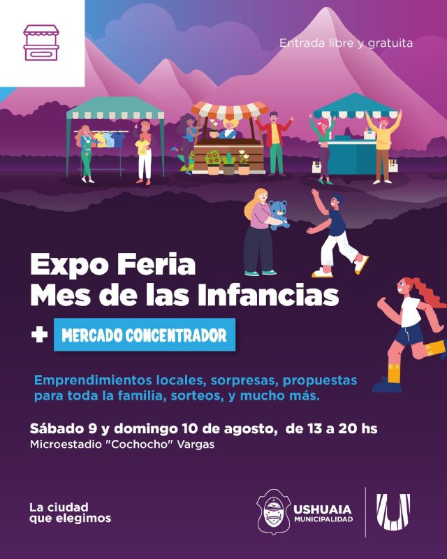 La Municipalidad de Ushuaia invita a la comunidad a participar de una nueva edición de la Expo Emprendedores, que en esta oportunidad se desarrollará bajo la temática del Mes de las Infancias. El evento tendrá lugar el sábado 9 y domingo 10 de agosto, de 13 a 20 horas, en el microestadio José “Cochocho” Vargas, con entrada libre y gratuita.
