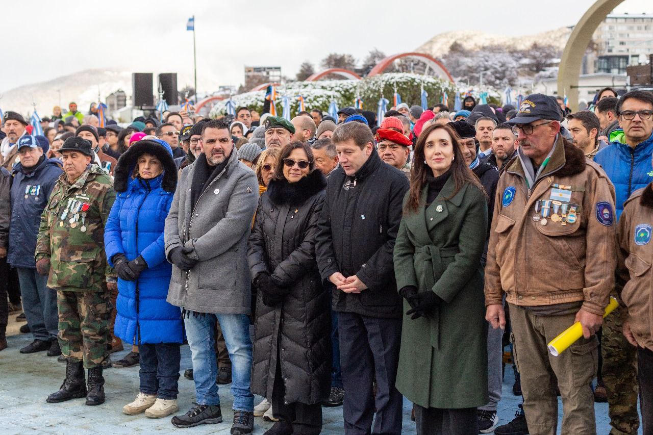 Estuvieron presentes la vicepresidenta de la Nación, Victoria Villarruel; el gobernador Gustavo Melella; el presidente del Centro de Excombatientes de Malvinas en Ushuaia, Juan Parodi; la presidenta del Superior Tribunal de Justicia, María del Carmen Battaini; el secretario de Asuntos Malvinas del Municipio, Dante Asili; y autoridades de los distintos poderes del Estado y de las fuerzas armadas y de seguridad.
