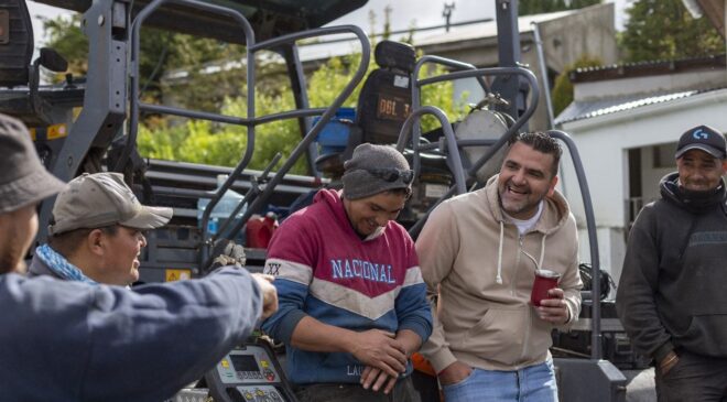 El intendente de Ushuaia Walter Vuoto recorrió este lunes la obra de repavimentación de la calle Gobernador Gómez que forma parte de las obras previstas para la segunda etapa del plan de pavimentación de la ciudad. Junto a la secretaria de Planificación e Inversión Pública Belén Borgna y el equipo de trabajo dialogaron con vecinos del sector y con los trabajadores de la empresa que ejecuta las obras con continuidad a lo largo de la presente temporada.
