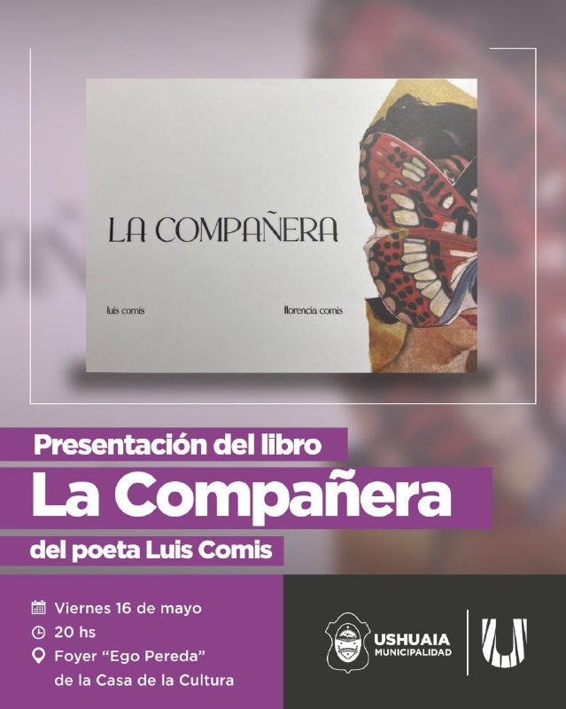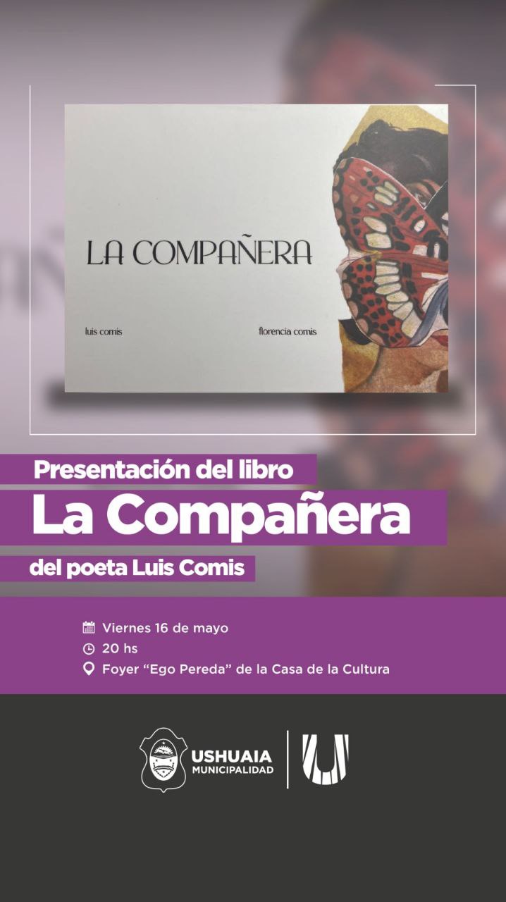 La Secretaría de Cultura y Educación de la Municipalidad de Ushuaia invita a vecinos y vecinas a la presentación del libro “La Compañera” del poeta Luis Comis, a realizarse el día viernes 16 de mayo a las 20:00 horas en el Foyer “Ego Pereda” de la Casa de la Cultura.