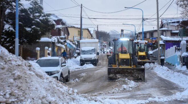 Como parte del Operativo Invierno, la Municipalidad de Ushuaia, en un trabajo en conjunto entre las áreas de Tránsito, Atención Al Vecino, Servicios Públicos y Participación Comunitaria, realizó la limpieza de la calle y veredas en Juan Domingo Perón entre 12 de Octubre y Fuegia Basket. Guillermo Navarro, subsecretario de Relaciones con la Comunidad, destacó “el trabajo en equipo, que nos permitió limpiar la calle Perón en su totalidad, junto con las veredas de las y los vecinos y comercios”.