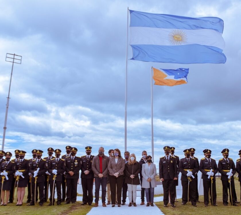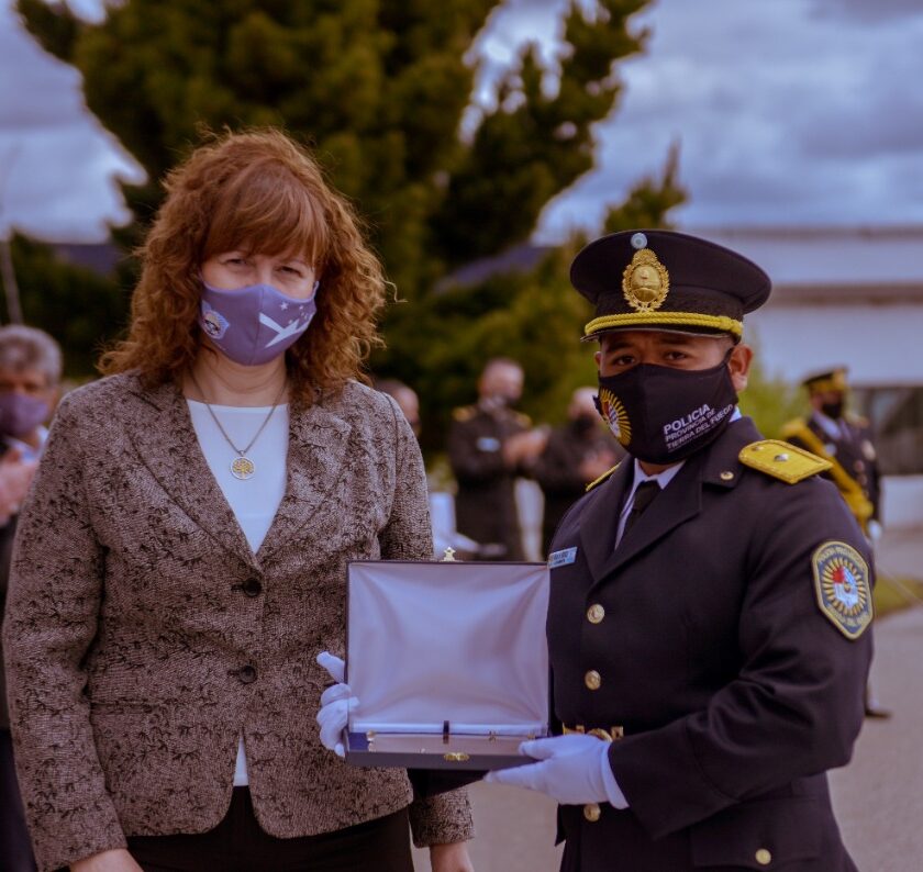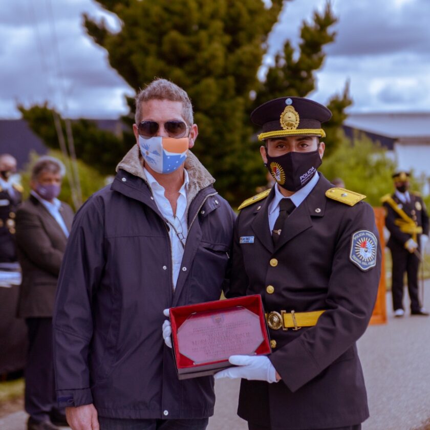 Y destacó que “este año en particular, cada uno de los miembros de nuestra fuerza policial fueguina, demostró estar a la altura de las circunstancias que nos tocan vivir en medio de esta terrible pandemia”.