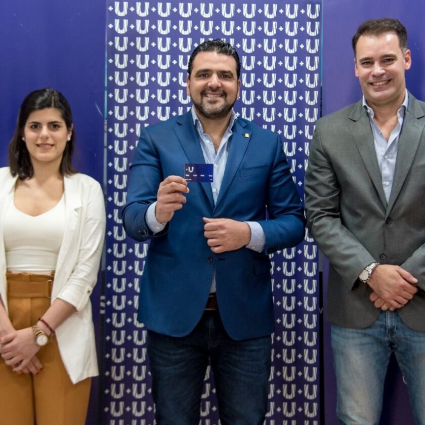 El intendente Walter Vuoto acompañado de la secretaría de Hacienda y Finanzas, Brenda Tomasevich y el subsecretario de Desarrollo Económico, Gustavo Ventura, presentó la nueva tarjeta de beneficios de la ciudad +U.